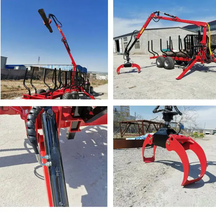 Regular maintenance checks, including tire inspections, grapple functionality tests, and cleaning after use, will help maintain optimal performance of your Farm Log Crane Logging Trailer.