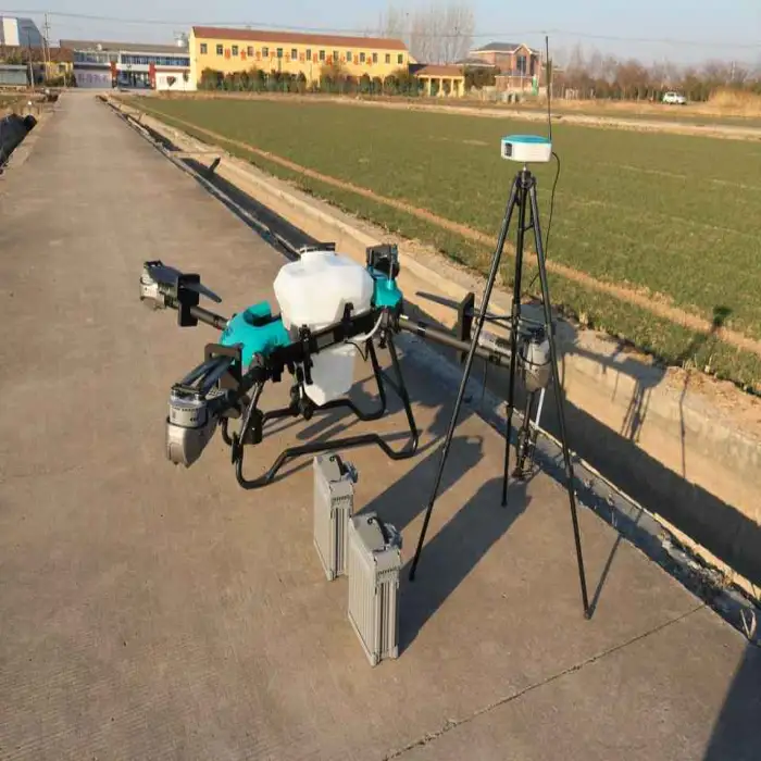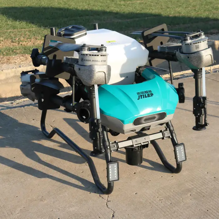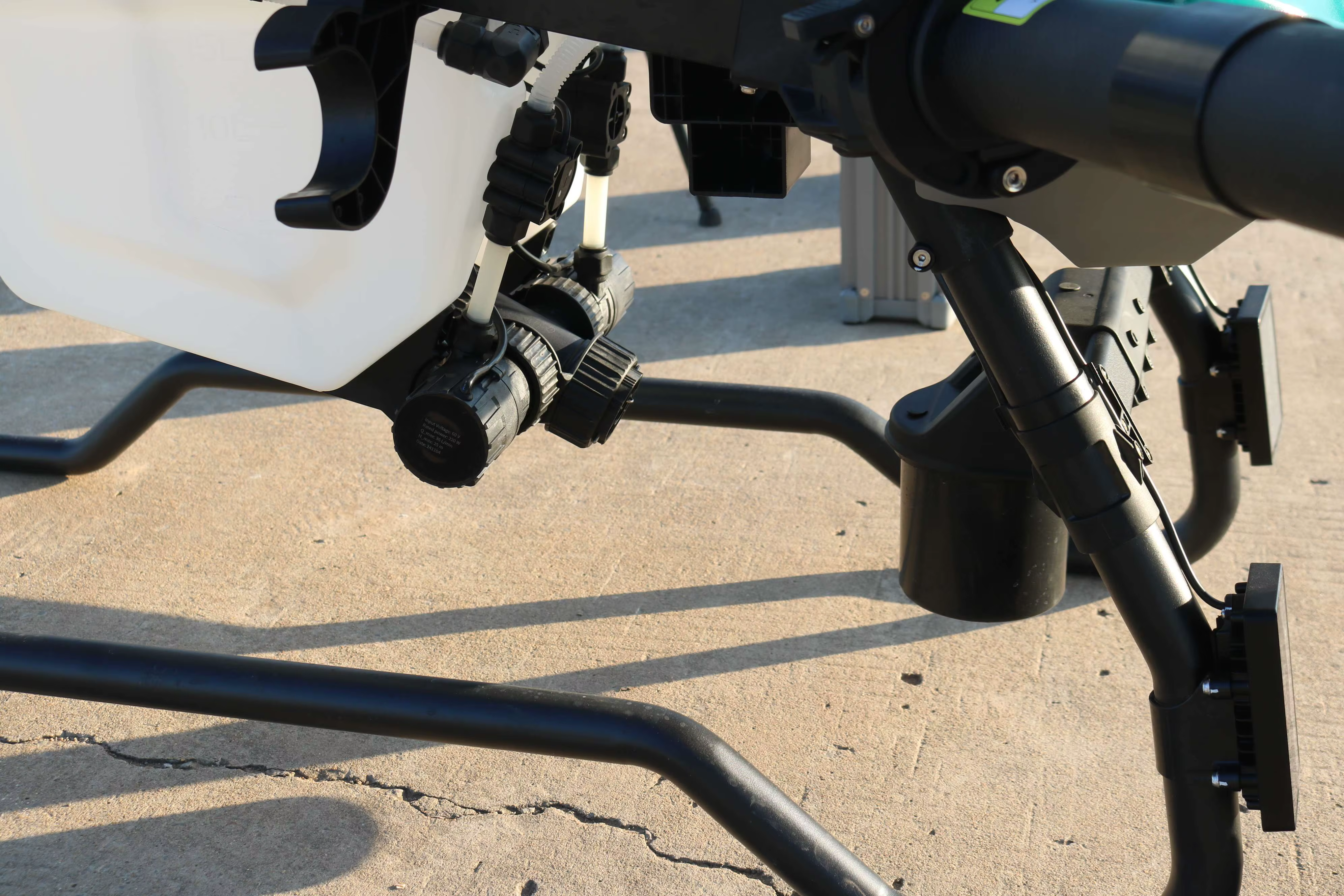 The drone weighs 30 kg, making it sturdy yet manageable for agricultural applications.