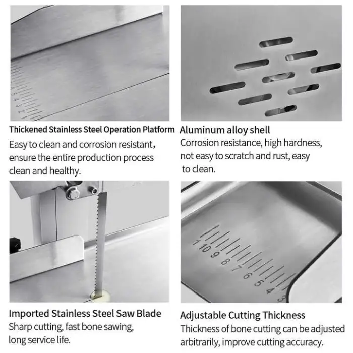 This bone saw is perfect for butcher shops, meat processing plants, commercial catering, frozen food factories, and even vegetable and fruit processing plants.