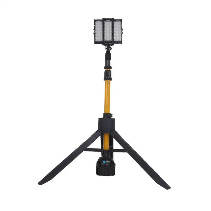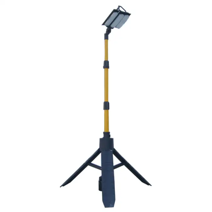 The light tower has a collapsible design, making it easy to transport and set up in various locations.