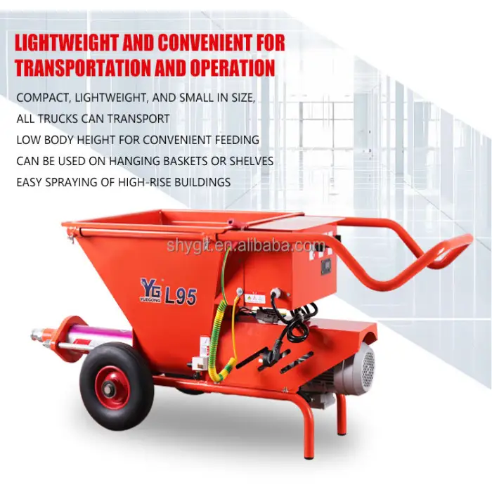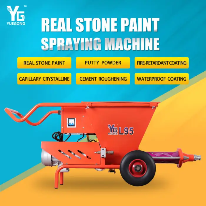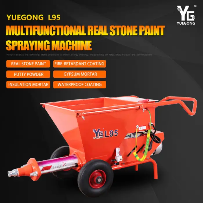 The Fireproof Stone Paint Spray Machine (YUEGONG L95) is an electric, high-pressure hopper gun system designed to mix and spray cement, mortar, stone paint and similar concrete-based materials for fast, efficient coverage on construction and industrial projects.