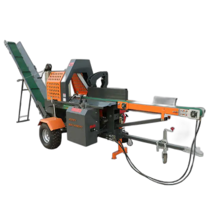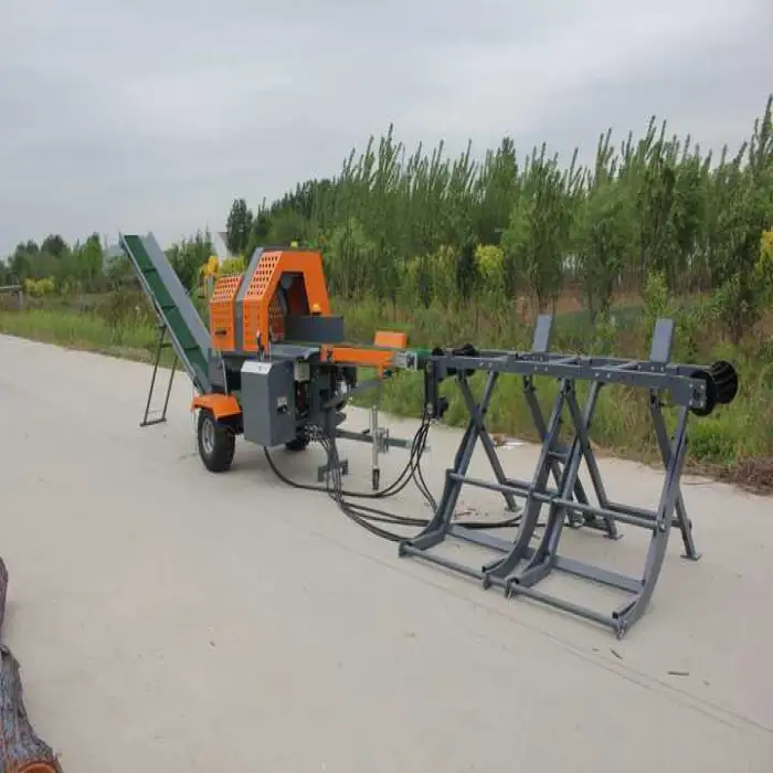 This machine is designed for cutting and splitting logs into firewood. It combines a horizontal hydraulic cutter and splitter with a log lifter to handle both small-scale home firewood preparation and professional forestry or wood-processing tasks.