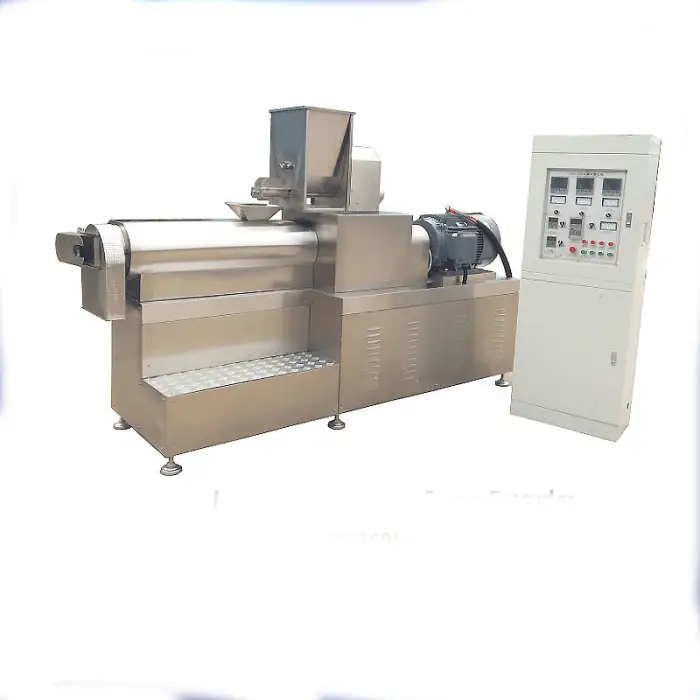 This machine can produce various types of feed including dry kibble, pet fish food, and dog food.