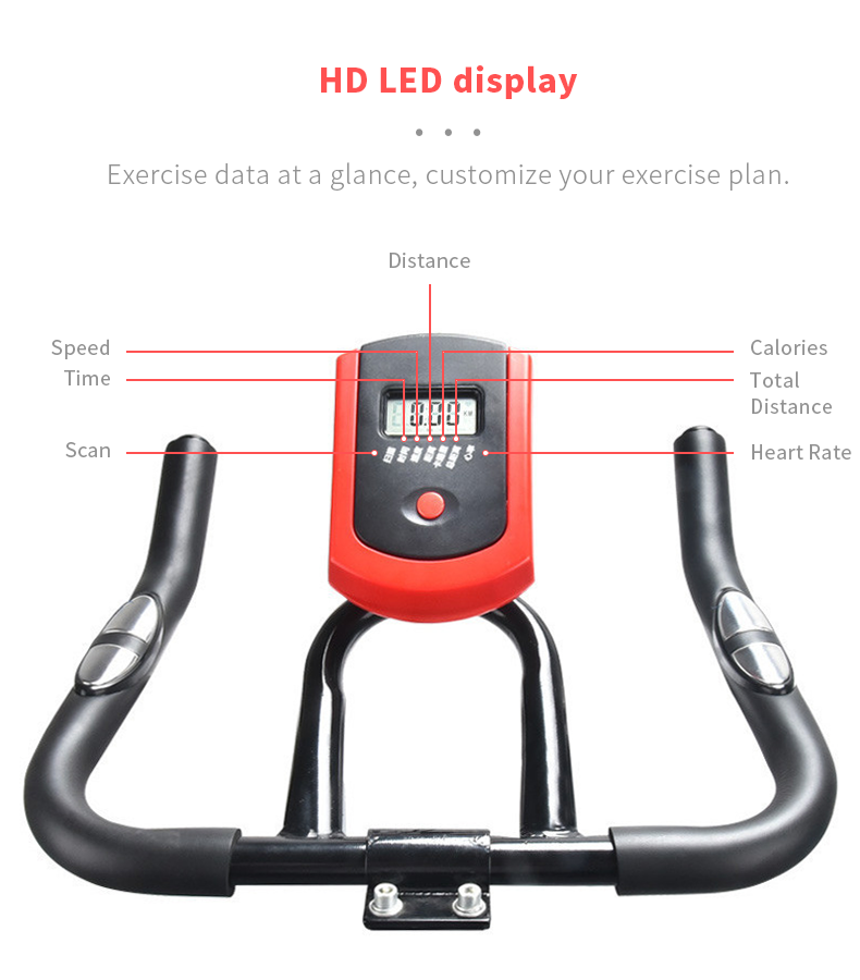 The LCD monitor tracks time, speed, pulse, distance, calories burned, and odometer while you cycle.