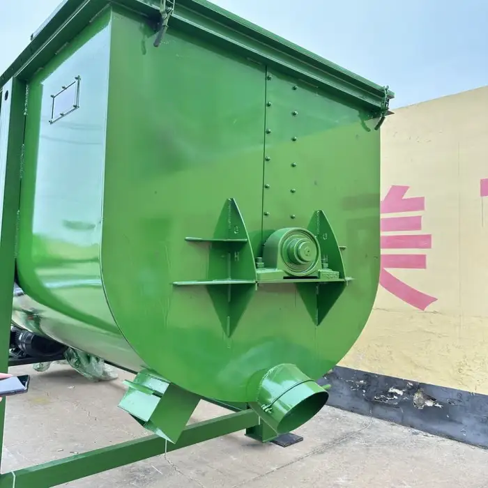 This mixer is suitable for mixing animal feed for poultry, livestock, and other farm animals.
