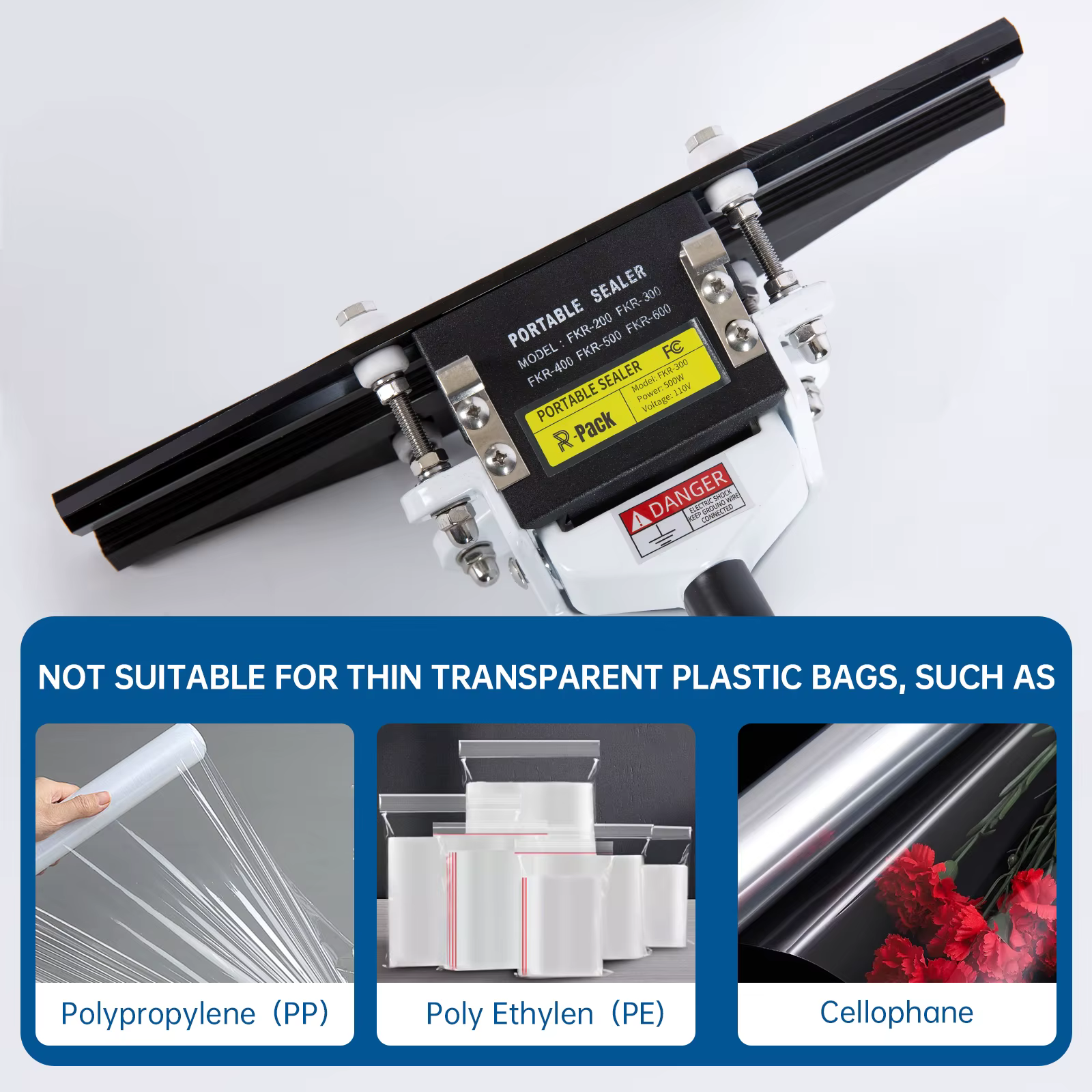 The R-Pack FKR-200C is suitable for various plastic packaging materials.