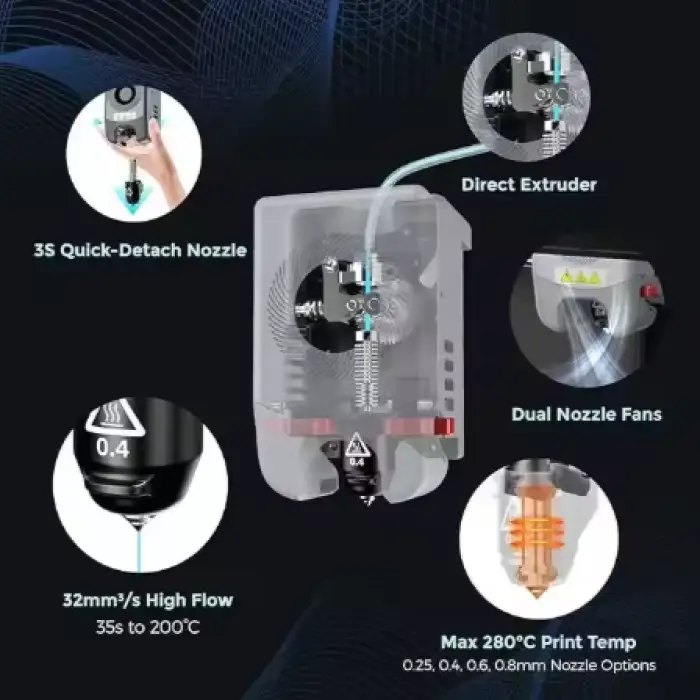 The Flashforge Adventurer 5M Pro offers nozzle diameters of 0.25mm, 0.4mm, 0.6mm, and 0.8mm.