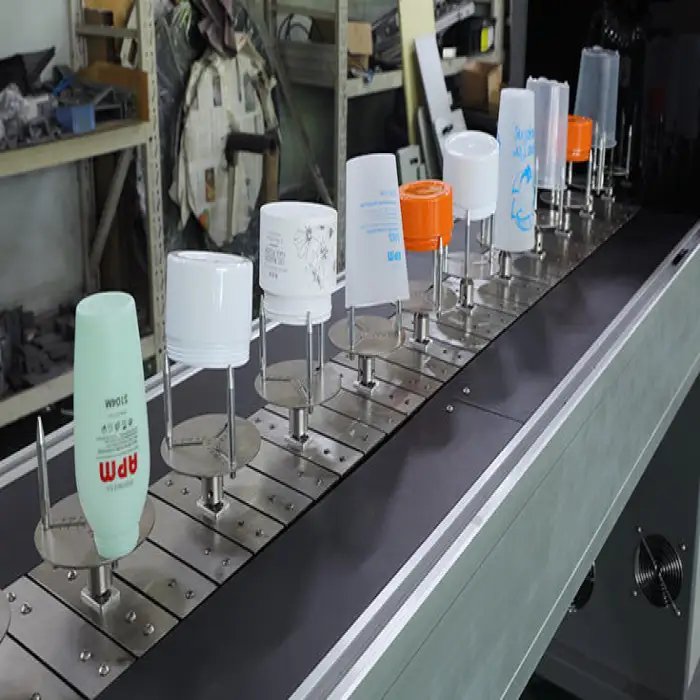 The Flat Round Oval Bottle UV Curing Machine is designed to efficiently dry screen printed products on various bottle shapes, including flat, round, and oval bottles.