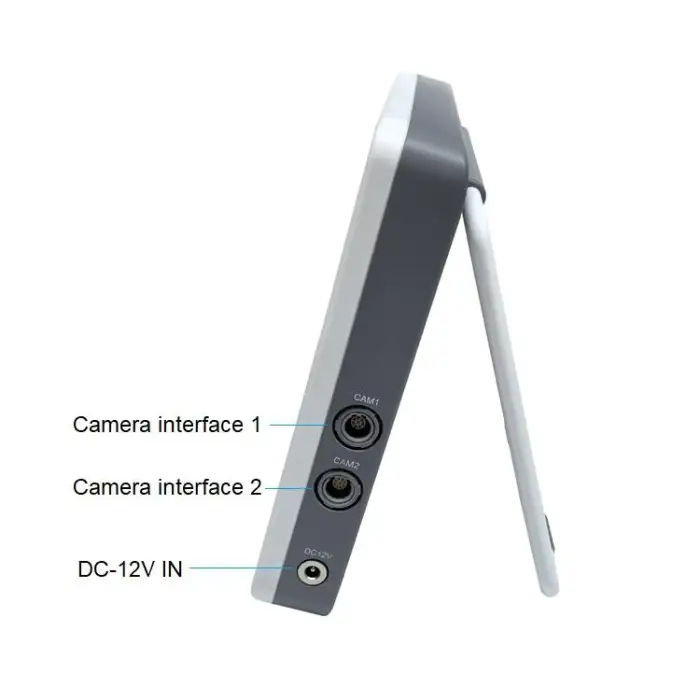 The endoscope is powered by a 12V-DC power adapter.