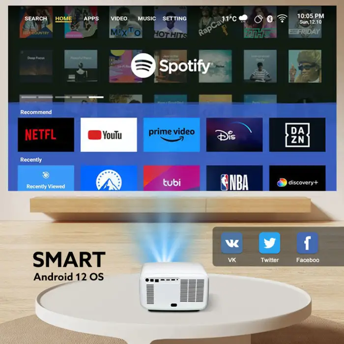 The projector is ideal for home theater entertainment, gaming sessions, outdoor movie nights, business presentations, and parties.