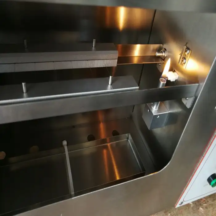 Key features include accurate flammability testing, compact design, easy-to-use electronic controls, and customizable options.