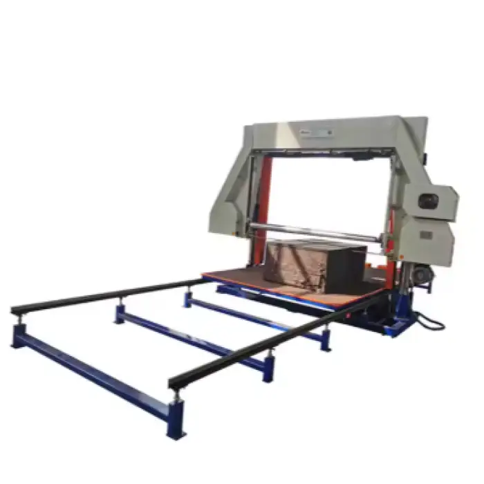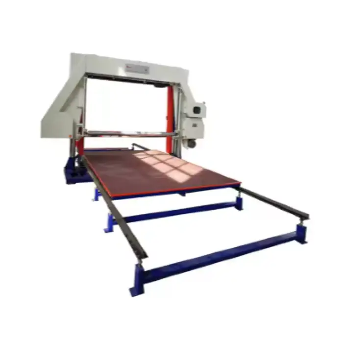 This machine can handle foam pieces with a maximum size of 3000 mm in length, 2150 mm in width, and 1200 mm in height.