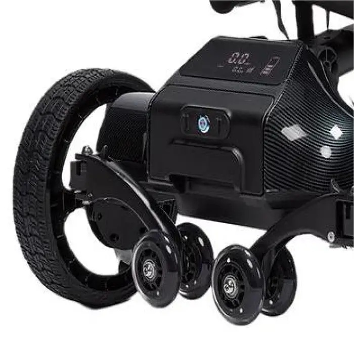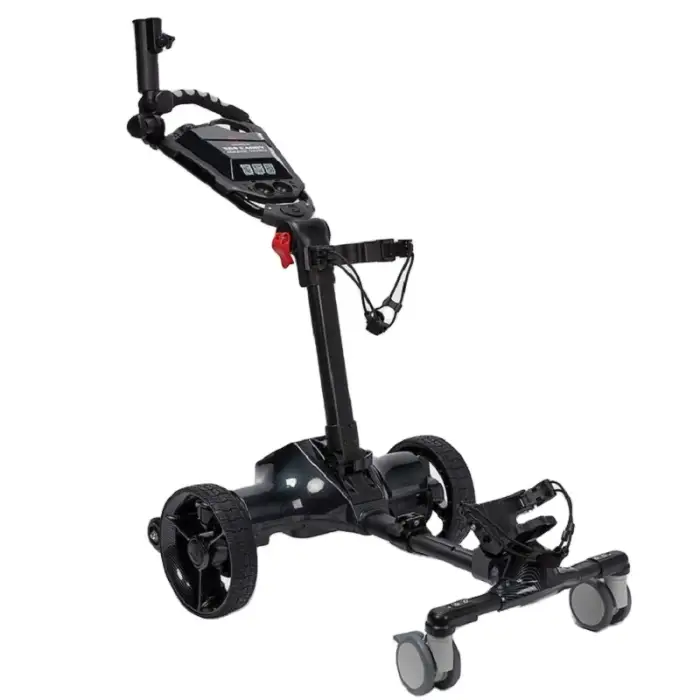 An electric, remote-control golf trolley (model G3 by icango Caddy) with auto-follow capability that carries your golf bag. Made from aircraft-grade aluminum, it’s designed for ease of use on flats and hills and supports Android/iOS app control.