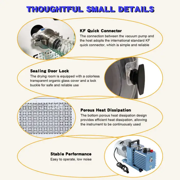 Common maintenance includes changing vacuum pump oil (if an external pump is used), cleaning trays and chambers, inspecting seals, and replacing any worn gaskets. Consumables include vacuum pump oil, vacuum bags or jars, and occasional replacement filters or seals.