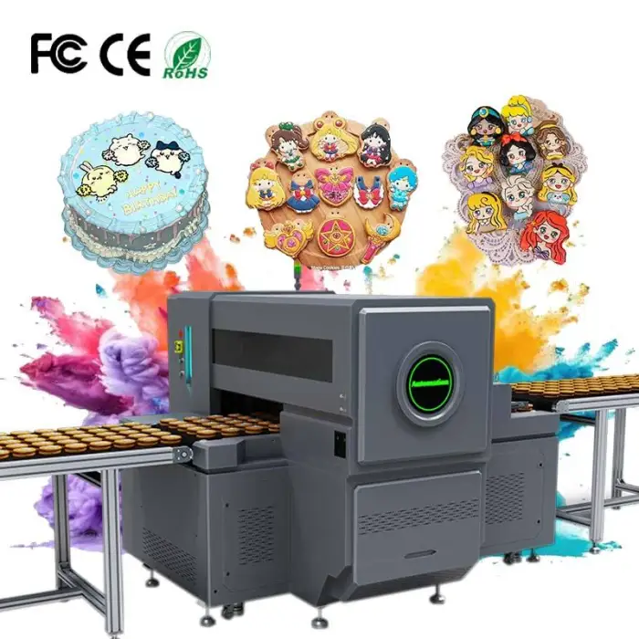 The Food Printer I3200 can print on a variety of foods including cakes, chocolates, biscuits, and other baked goods.