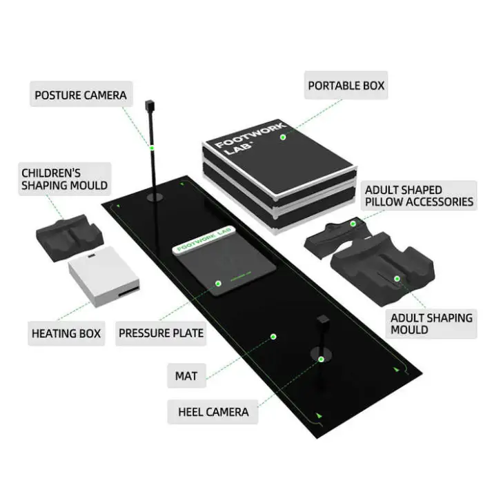 The F-Move Pro from FOOTWORK LAB is a portable foot scanner and rehabilitation machine designed for foot and gait assessment, posture correction and producing heat-moldable insoles. It includes a foot pressure sensor/pressure plate and generates detailed test reports including orthotic foot arch type.