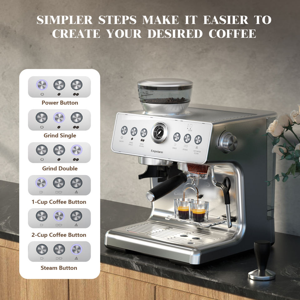 The semi-automatic control allows you to manually adjust the brewing process for a tailored espresso experience. Simply follow the provided instructions for optimal use.