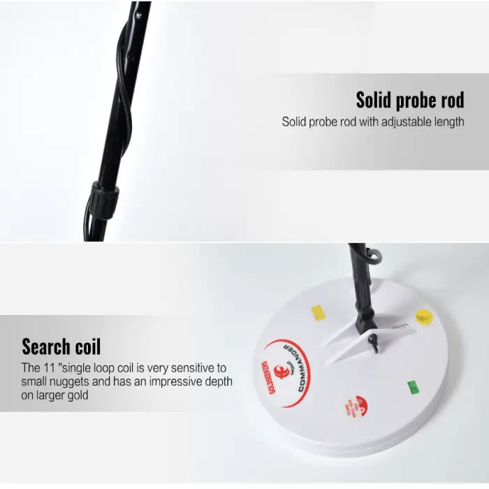 The GDX8000 features a search coil with a diameter of 10 cm, which enhances its coverage area during metal detection.