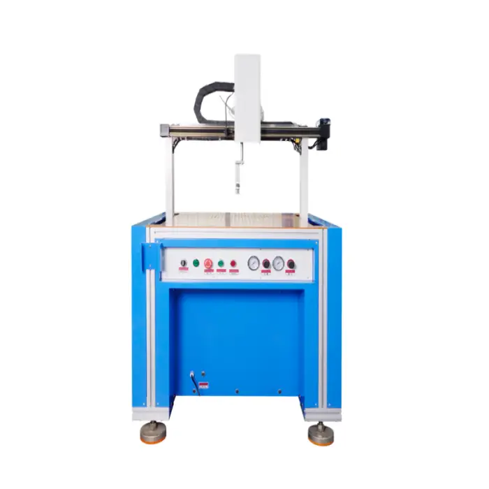 The Four Axis Glue Applicator is a semi-automatic machine.