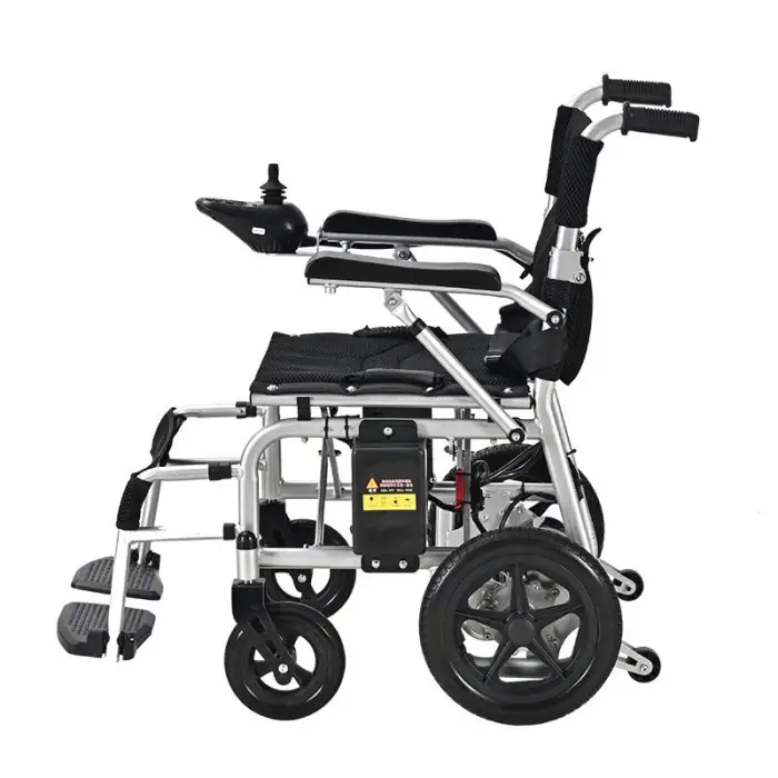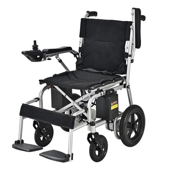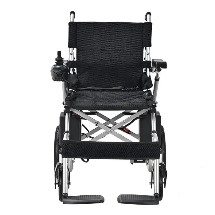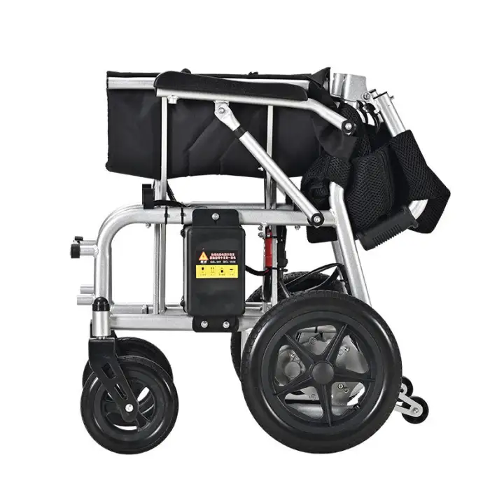 The wheelchair is powered electrically and comes with a removable battery for convenience.