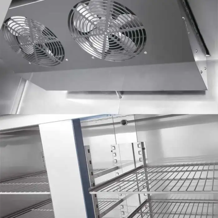 Clean stainless steel with a mild detergent or a stainless-steel cleaner and warm water. Avoid abrasive pads or harsh chemicals. Regularly clean seals and the interior, and check condensers and fans for dust buildup.