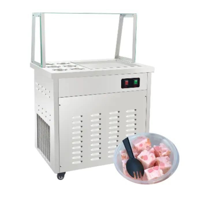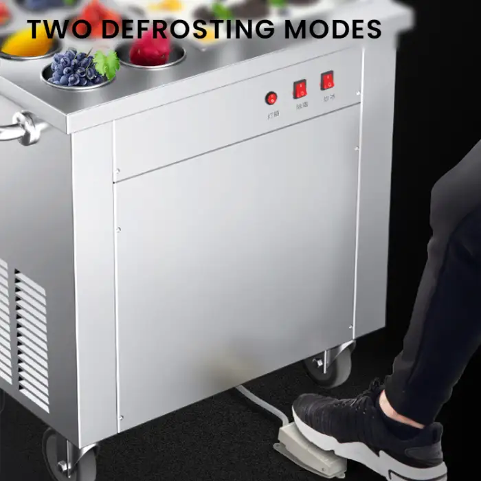 The xZ-360 is a floor-standing fried ice cream / instant ice cream roll machine designed to make ice cream rolls, yogurt rolls and other frozen treats for home and commercial use. It features a stainless-steel body, easy operation and a durable long-lasting design.