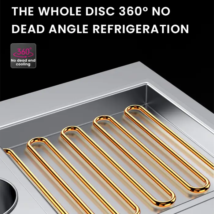 Clean the stainless-steel surfaces and cold plate after each service with a soft cloth and mild detergent. Avoid abrasive tools and high-pressure water directly into electrical components. Perform routine checks on seals, fasteners and electrical connections. Follow the supplier's maintenance guidance for long-term service.