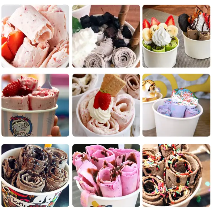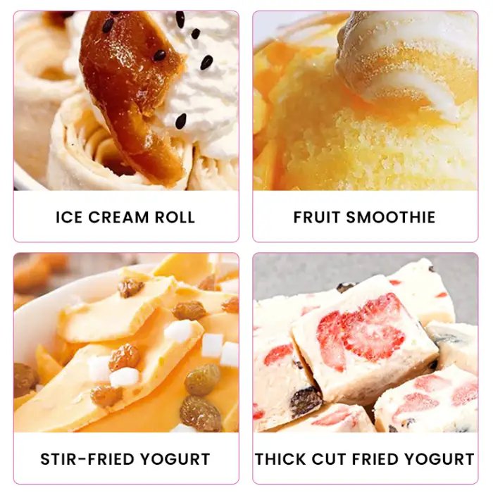 You can make fried-style ice cream rolls, yogurt ice cream rolls, fruit-flavored ice cream rolls and other frozen treats that use a liquid or semi-liquid mix that can be spread thin and frozen on the cold plate.
