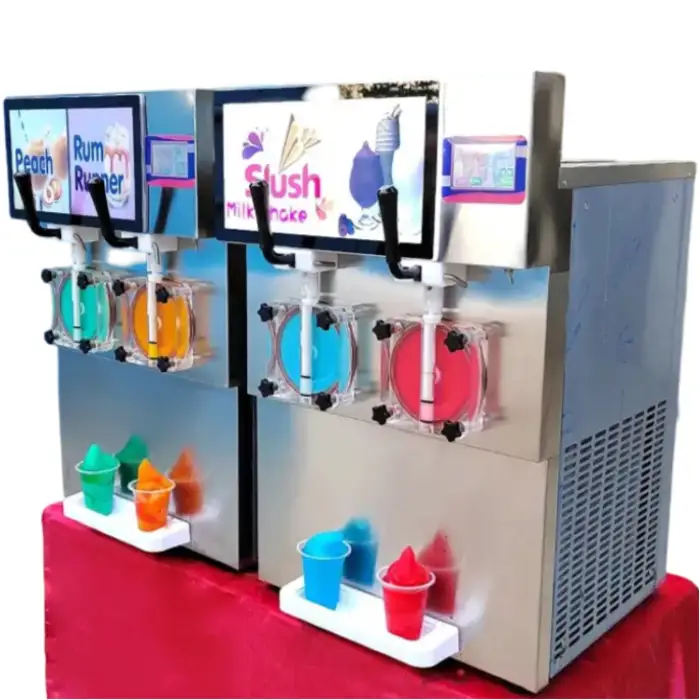 The machine can make a variety of frozen beverages including slushies, smoothies, margaritas, daiquiris, and even coffee-based drinks.