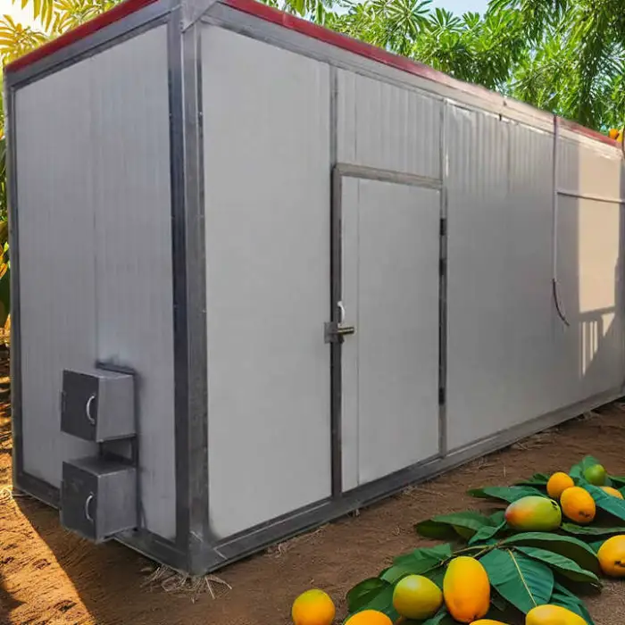 The Fruit Tunnel Dehydrator is designed to efficiently process a variety of fruits and vegetables, including mangoes, bananas, apples, and lemons.