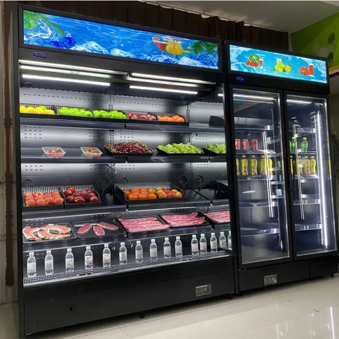 It is ideal for displaying fresh fruits and vegetables, and can also store drinks, dairy products, and other perishable items.