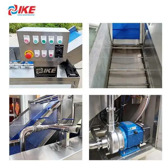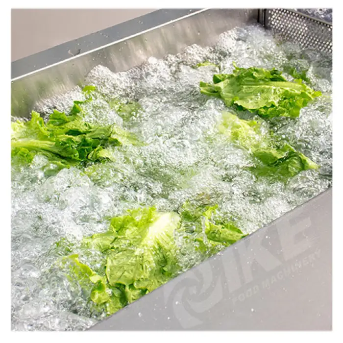 Bubble agitation helps dislodge surface pesticides and contaminants more effectively than simple rinsing. For bacterial reduction, combining bubble washing with food-safe sanitizers or disinfectants (per supplier recommendations) can improve safety. It does not guarantee complete removal of all residues—follow good food-safety practices.