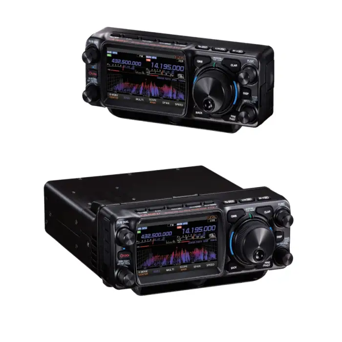 Key features include an all-mode transceiver, 100 memory channels, lightweight design, high output power, and a clear digital display.