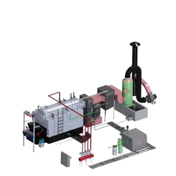 The boiler is designed for low pollution combustion, minimizing emissions and reducing the overall environmental footprint.