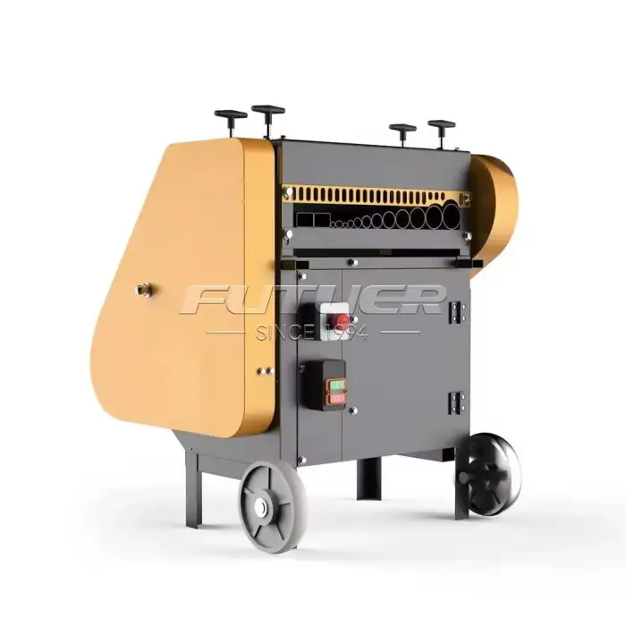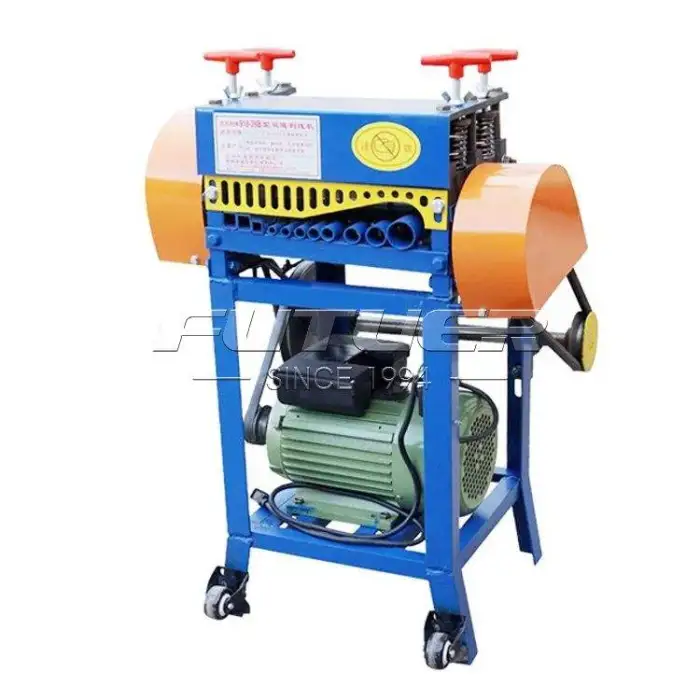 The machine is designed to efficiently strip electrical scrap copper wires and can handle various types of waste cables.
