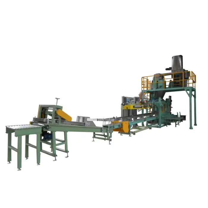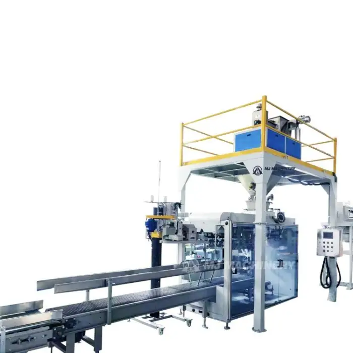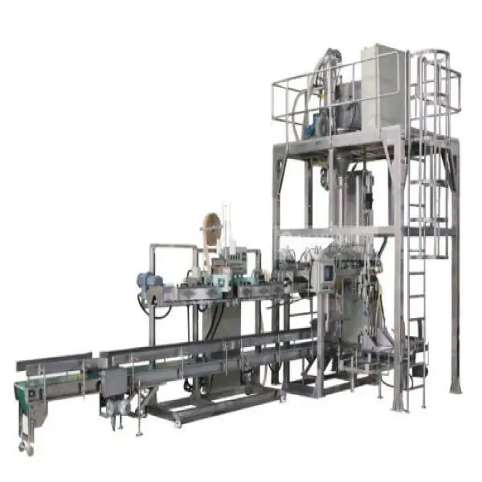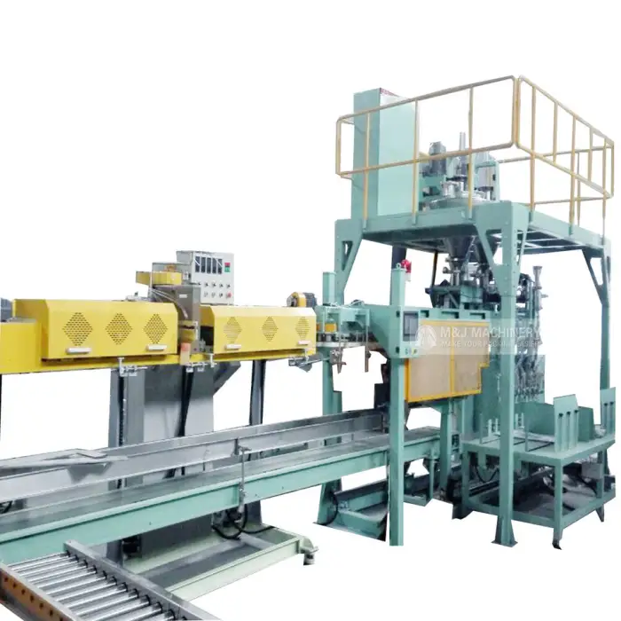 The machine can pack various materials including flour, rice, sugar, candy, food pellets, and more.