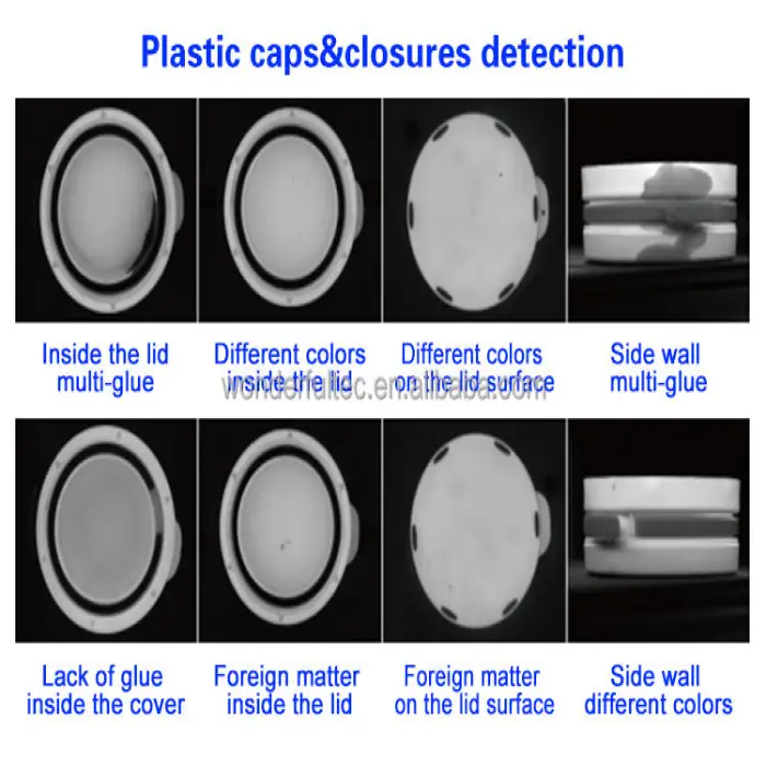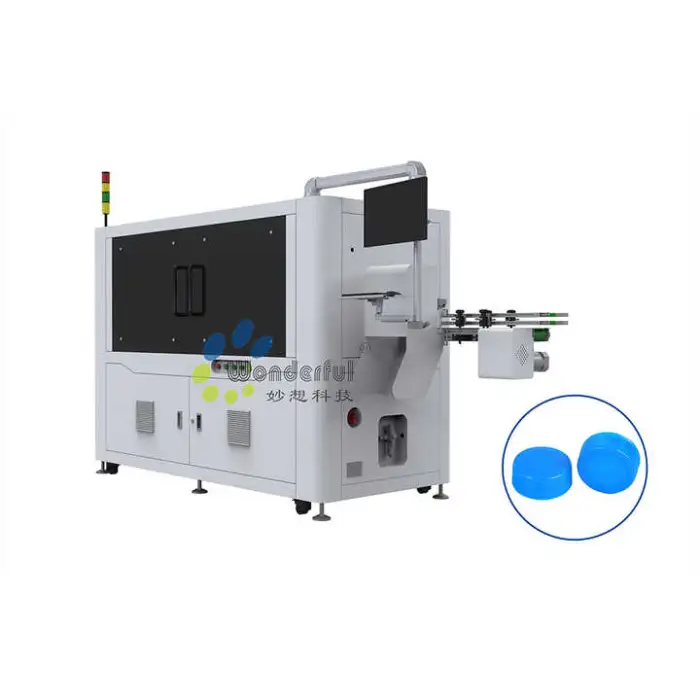 The machine utilizes high-quality visual inspection technology to accurately assess the quality of plastic bottle caps.