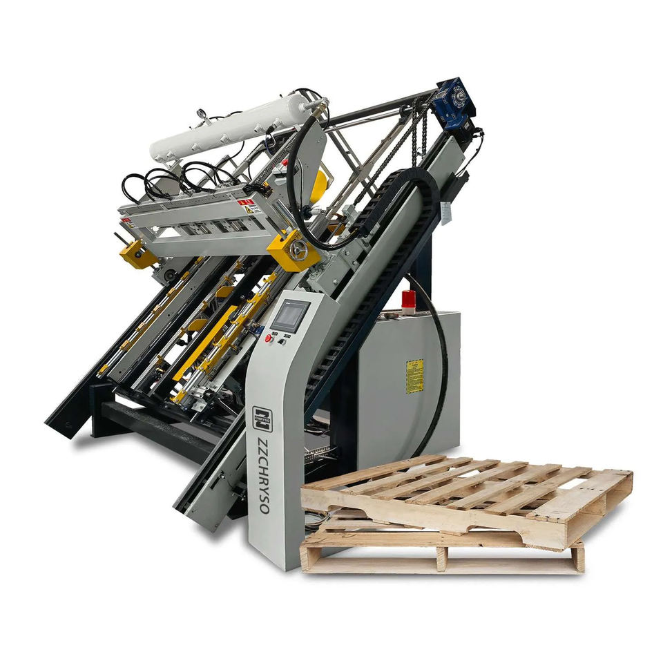 The Full Automatic Wood Block Nailing Machine is a powerful tool designed for making EUR Epal pallets with ease. This machine automates the nailing process, improving efficiency and reducing labor costs. With its advanced hydraulic system and user-friendly PLC touch screen, it makes pallet production simple and reliable.