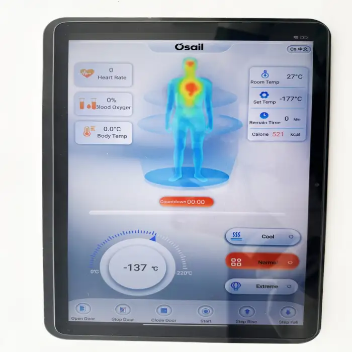 The auto-liquid nitrogen supply provides efficient and consistent cooling, ensuring that the chamber maintains optimal temperatures for effective cryotherapy.