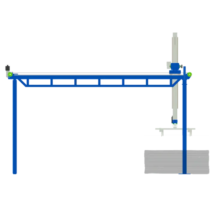 The machine is suitable for various industrial automation tasks, including packaging, stacking products, warehousing, and assembly lines.