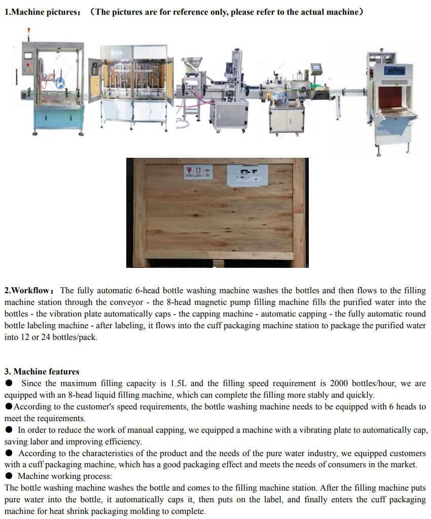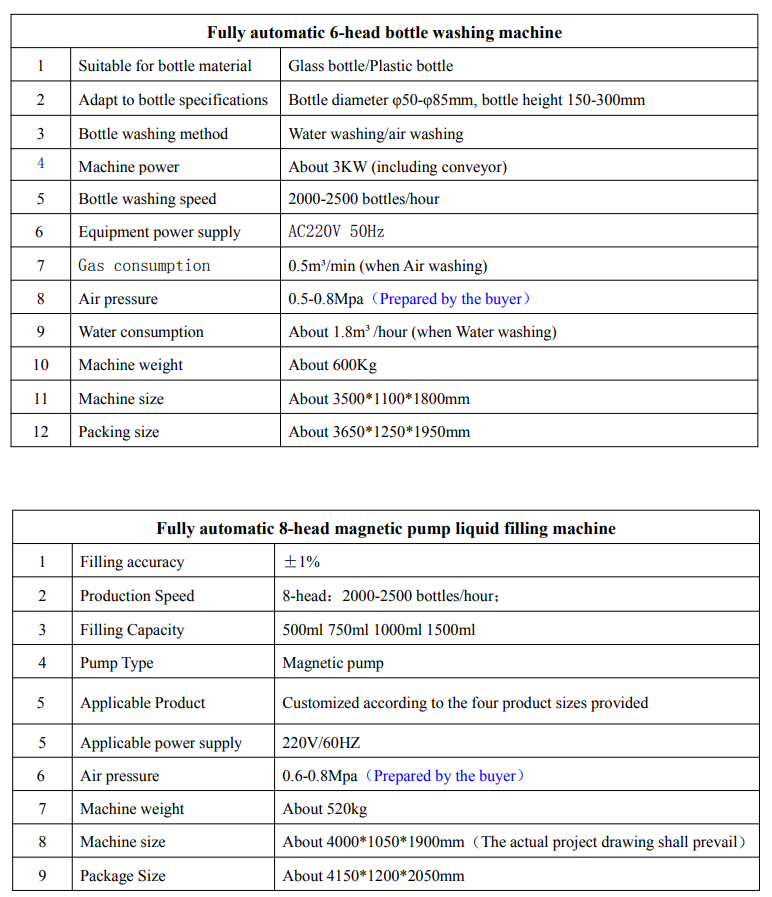 Fully Automatic 6-Head Bottle Washing Machine Including 8-Head Magnetic Pump Filling Machine, Cap Feeder, Automatic Capping Machine, Automatic Labeling Machine & Cuff Packaging Machine SLD
