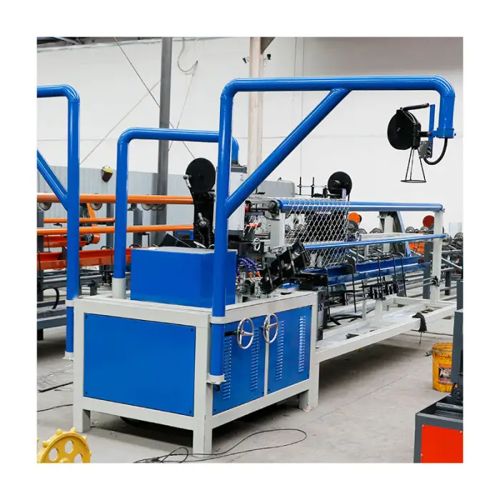 The machine is designed to work with various types of wire suitable for chain link fencing, typically made of galvanized steel.