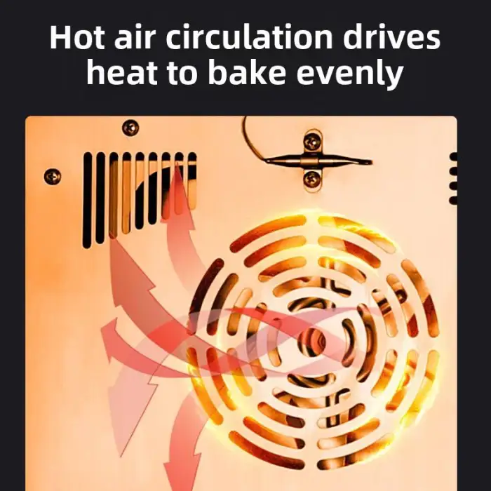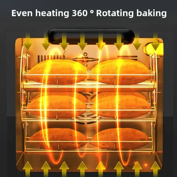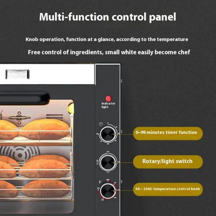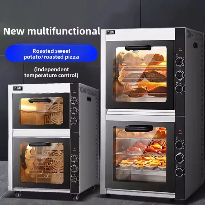 The machine is designed to cook roasted sweet potatoes, pizza, corn, and pears quickly and efficiently.