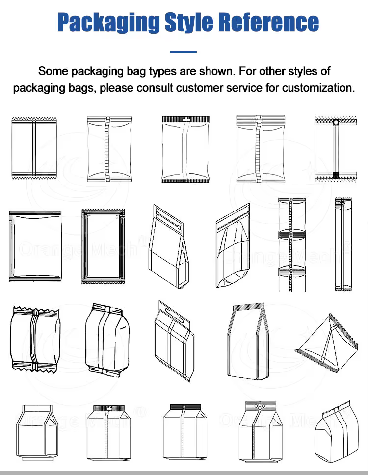 The machine is capable of packing in various styles such as bags, pouches, and cans.