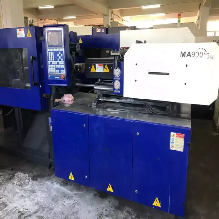 The machine has an injection rate of 158 grams per second, allowing for efficient production.