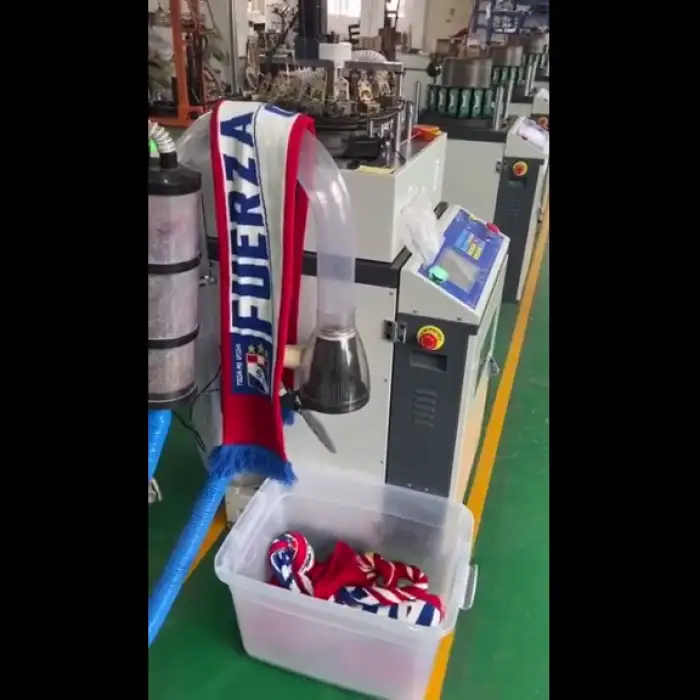 The Fully Computerized Football Fan Scarf Knitting Machine can produce up to 800 pieces per day, depending on the complexity of the designs.