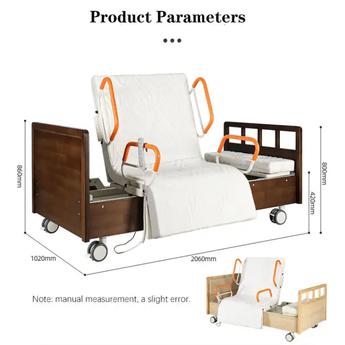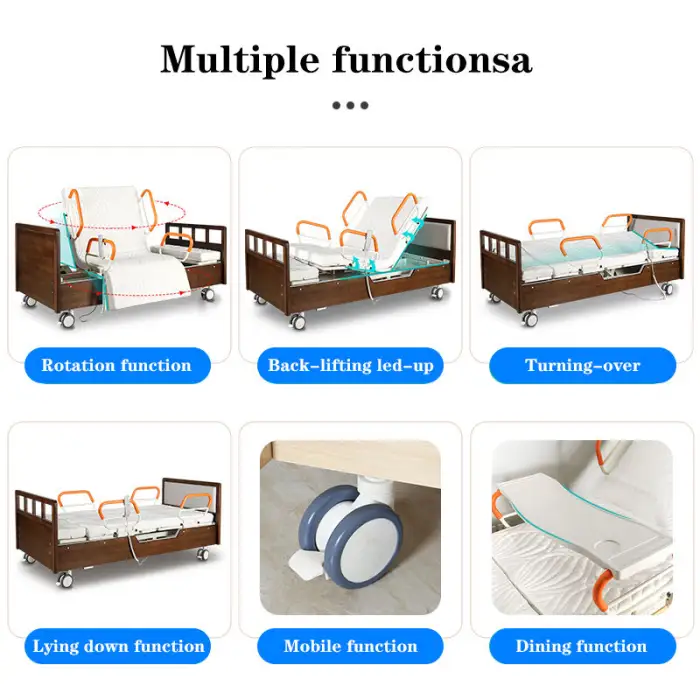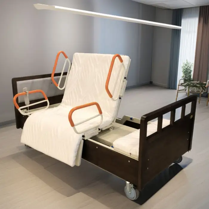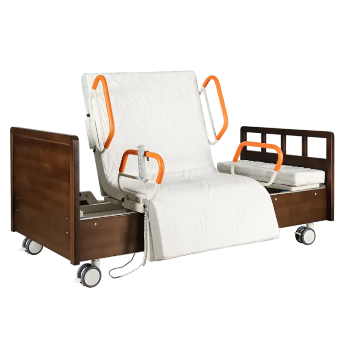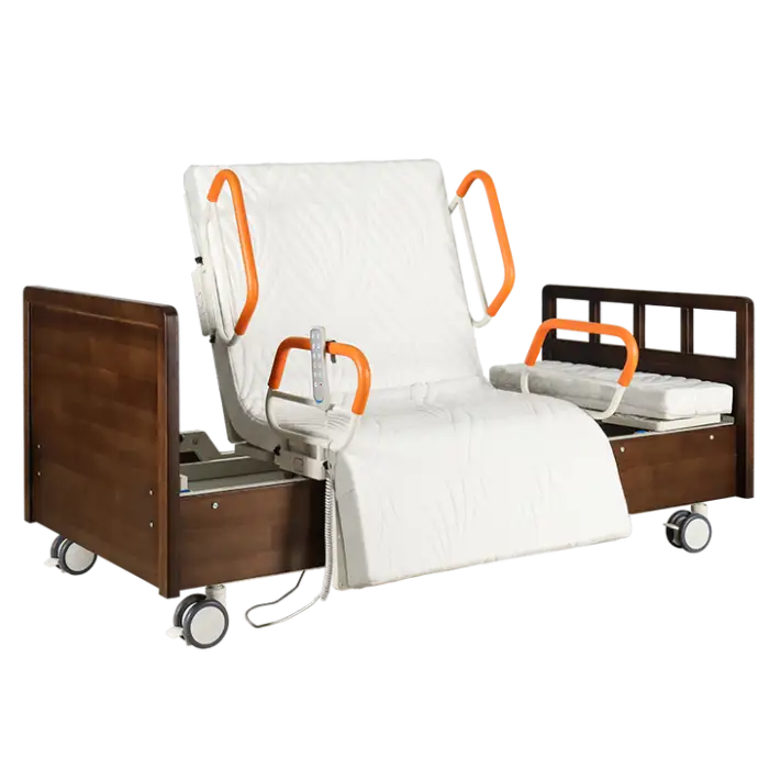 The bed's adjustable features and comfort-oriented design make daily care easier for caregivers and more comfortable for seniors.