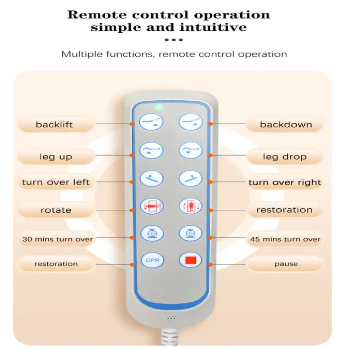 The remote control allows users to easily adjust the bed's position, including rotating and lifting the back and legs for optimal comfort.