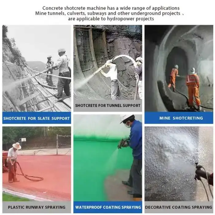 Typical applications include tunnel and underground construction, shotcreting of building projects, concrete repair, foundation and retaining wall construction, and filling voids in mining or civil works.