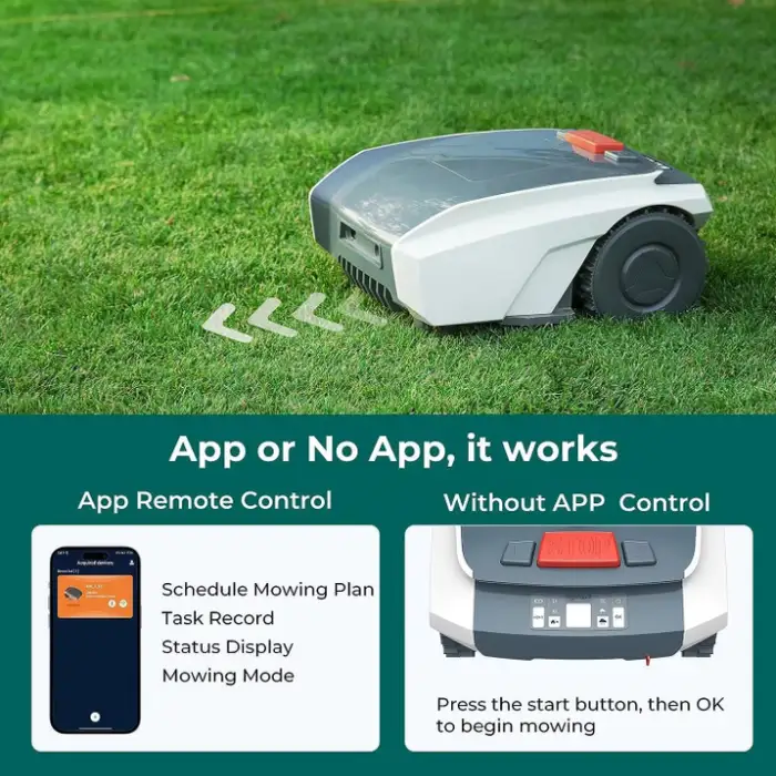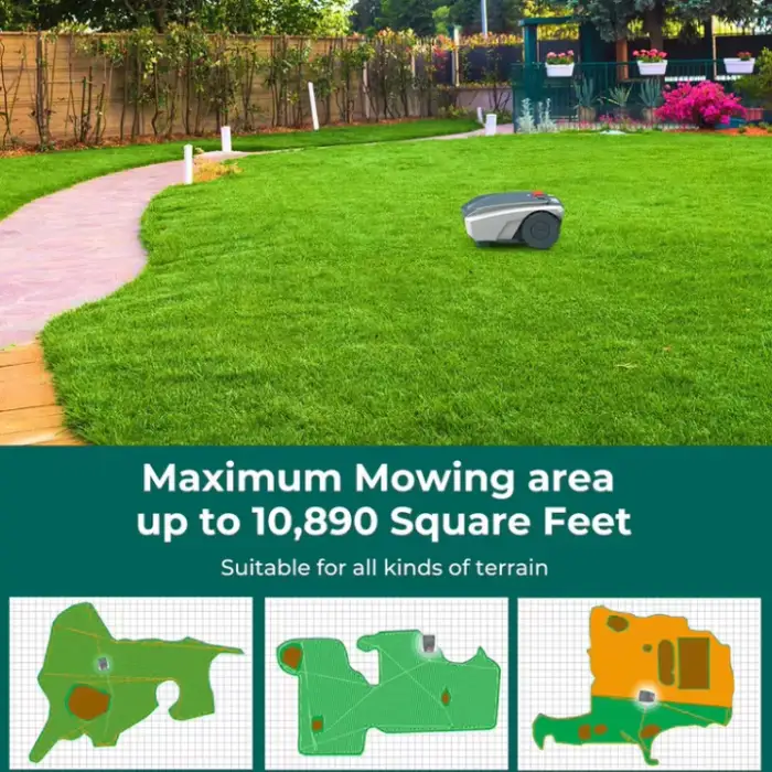 This robot lawn mower is ideal for residential gardens, courtyards, and small parks. For larger areas, consider multiple units or a more powerful model.